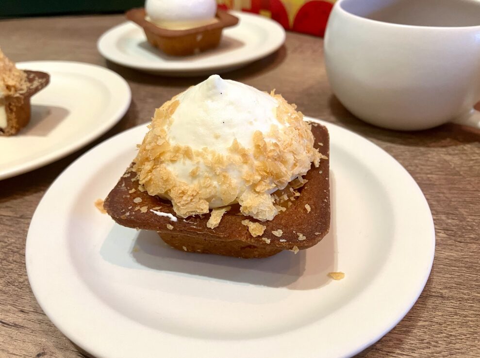 クッキー生地は手焼き、ムースは空気を含ませながら手で丁寧に絞り込む。機械化せずに人の手を介することで、食感の妙や見た目の美しさが保たれます。さらに「作りすぎない」ことも哲学のひとつ。数量限定販売は、作りたての状態を守るための工夫であり、常にベストな品質で提供するための姿勢です。