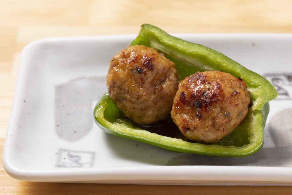 パリパリ食感が味わえる新鮮なピーマンと串でも人気のつくねを合わせたお酒がすすむ一品。