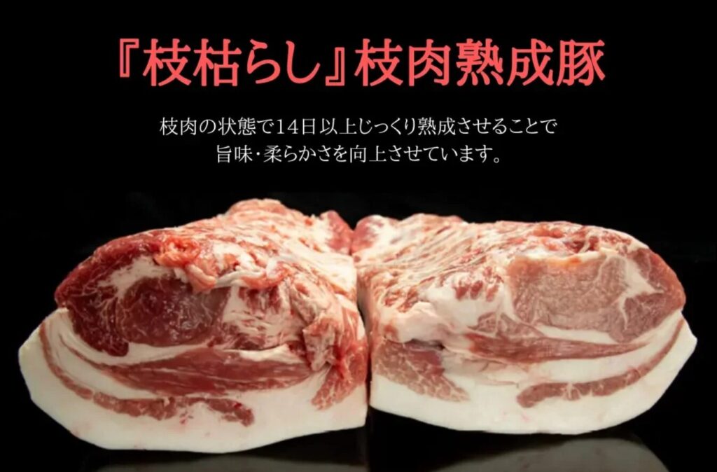 豚肉を14日以上じっくり寝かせることで、余分な水分が抜け、アミノ酸やグルタミン酸などの旨味成分が1.5倍以上に増加します。