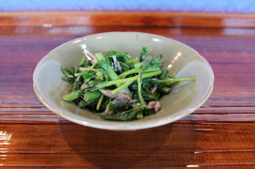 料理に使われているのは、八丈島から仕入れた特産品が多くあります。なかでも注目したいのが「明日葉(あしたば)」と「くさや」です。