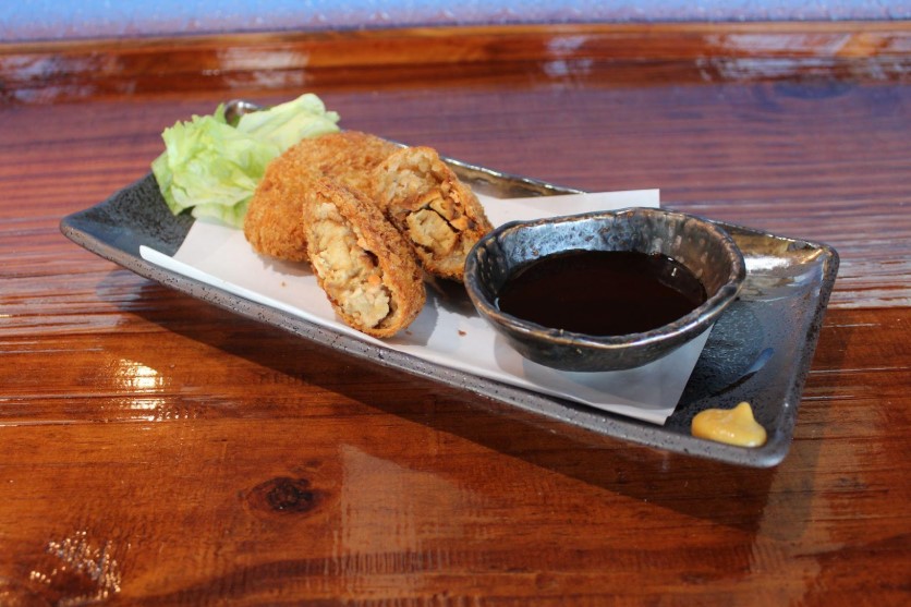 ひき肉の代わりに魚のすり身を使った“魚ロッケ”。ふんわりとした食感と海の香りが広がる、どこか懐かしい味わいです。中にはゴロっとした魚が入っていてお酒との相性も抜群。