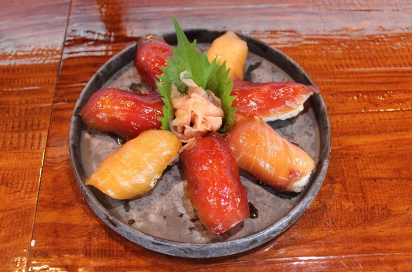 甘めに仕上げたシャリと、自家製ダレに漬け込んだ旬の魚が絶妙にマッチ。鮪、カジキ、真鯛、目鯛などを使った握りは、シンプルながらも深い旨みが感じられる、まさに“必食”の一品です。ベトナム店でも人気のようです。