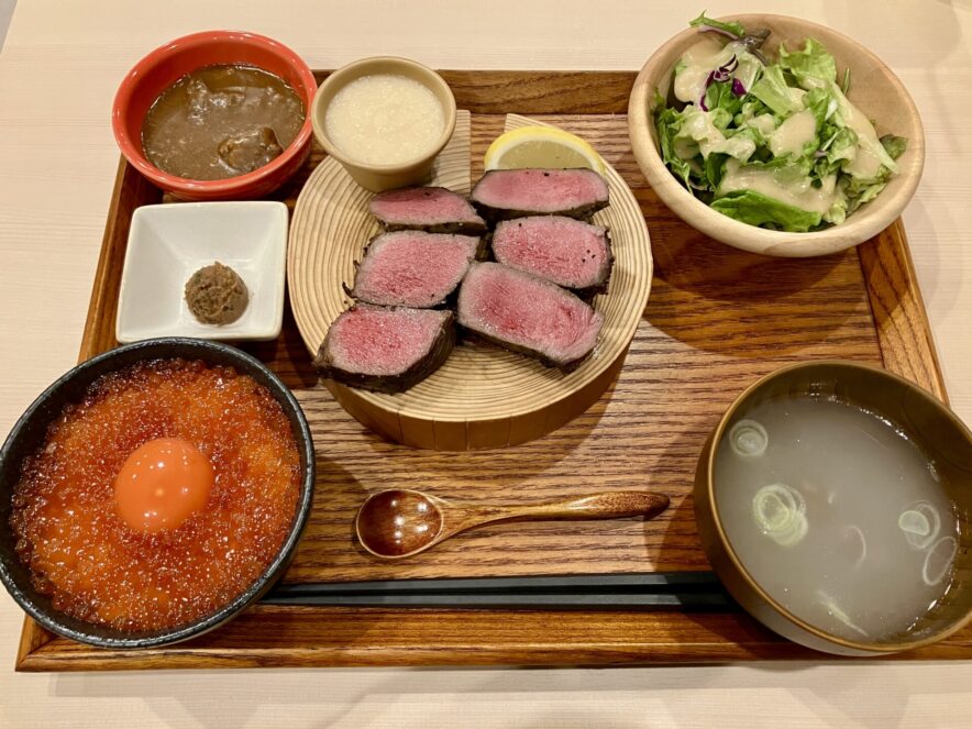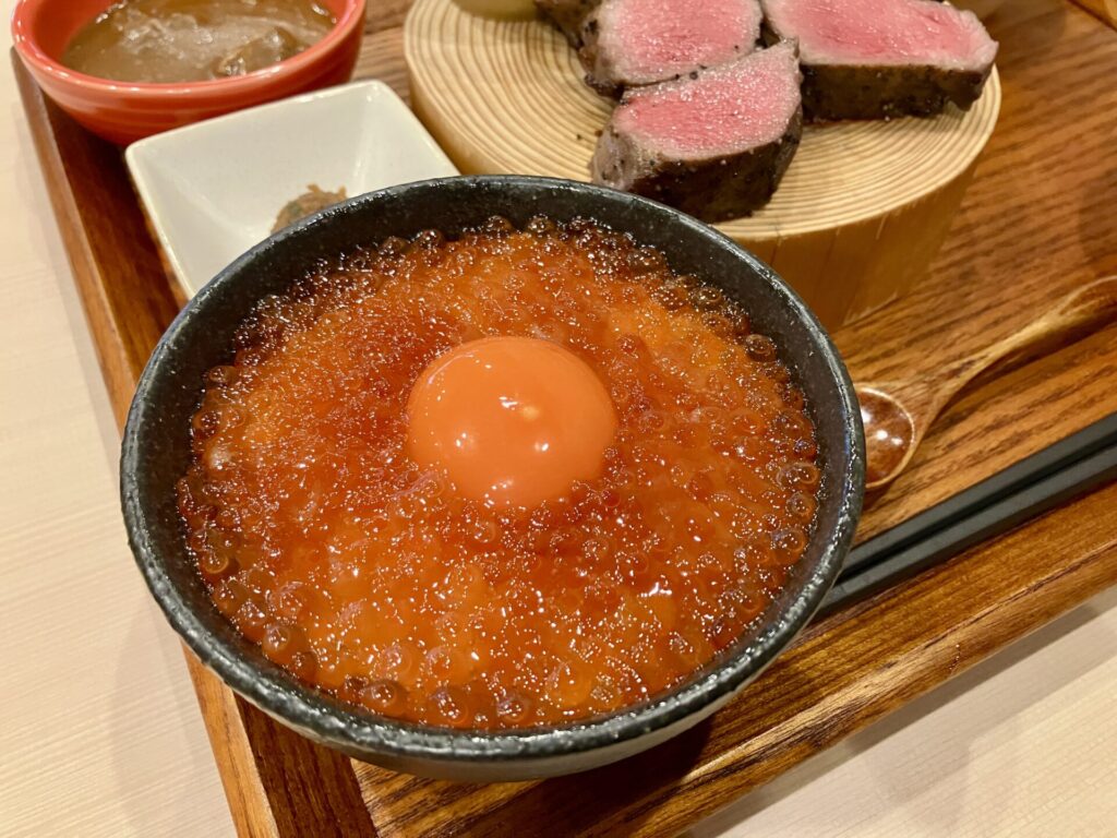 つややかなごはんに濃厚な卵黄といくらの塩味が重なり、牛たんとの相性は抜群でした。