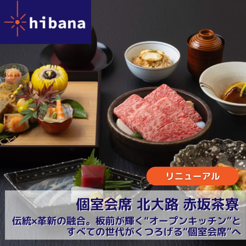 ▼【リニューアル|個室会席 北大路 赤坂茶寮】伝統×革新の融合。板前が輝く“オープンキッチン”と、すべての世代がくつろげる“個室会席”へ