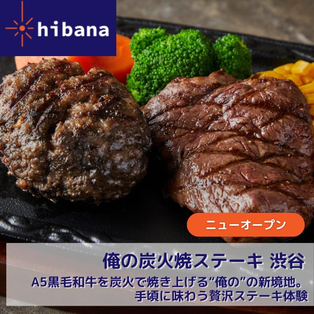 ▼【ニューオープン|俺の炭火焼ステーキ 渋谷】A5黒毛和牛を炭火で焼き上げる“俺の”の新境地。手頃に味わう贅沢ステーキ体験