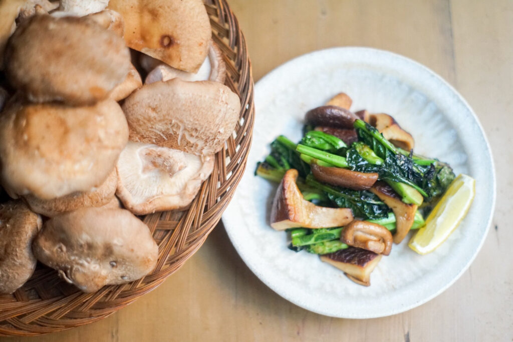 八丈島産の肉厚な椎茸とアレッタをバター醤油で焼き上げた一皿。旨みとほろ苦さが調和した春らしい味わいです。