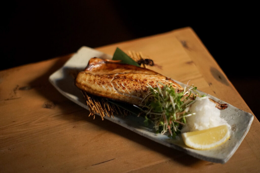 一夜干しにした魚介を遠火でじっくり焼き上げ、外は香ばしく中はふっくらとした食感に仕上げた一品。素材の旨みを引き出します。