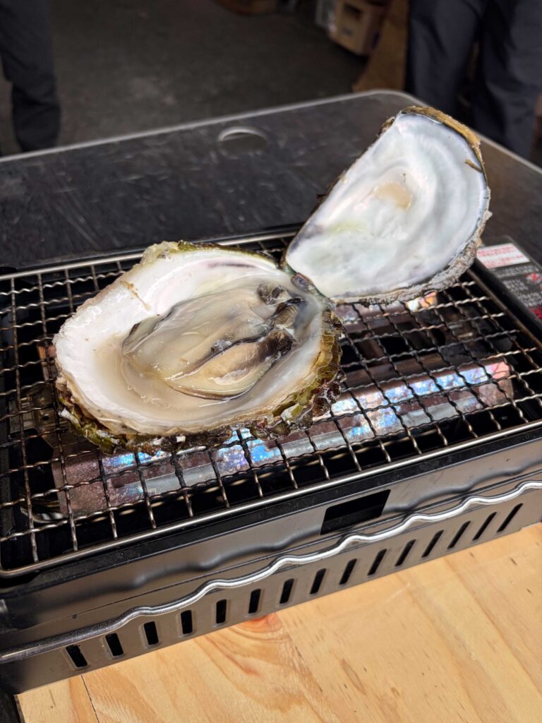 入口で商品を選び、レジで精算後、テーブルでセルフ浜焼きを楽しむ“市場型スタイル”が特徴です。会場には大漁旗やのぼりを掲げ、市場の賑わいを感じられる空間を演出。まるで漁港の市場を訪れたかのような臨場感のある食体験を提供します。