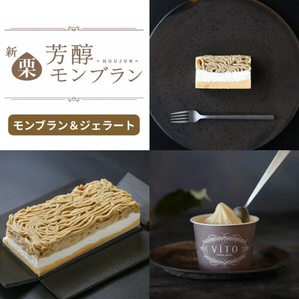 新栗を楽しむ「芳醇モンブラン」と、ジェラートの概念を覆すほどのたっぷりの栗を使用した「ほぼ栗ジェラート」のセット商品です。