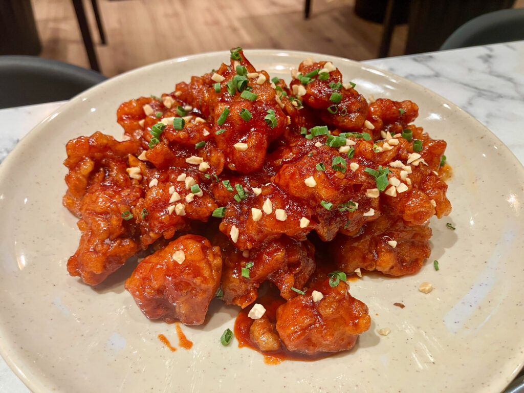 カリッと揚げた鶏肉に、甘辛いヤンニョムソースをたっぷり絡めた韓国式からあげ。