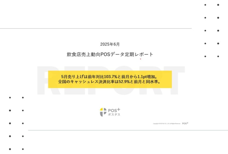 ポスタス株式会社(本社:東京都中央区、代表取締役社長:本田 興一、以下:ポスタス)は、2025年5月度の飲食店売上動向についてPOSデータを基に集計し、結果をとりまとめましたので公開します。