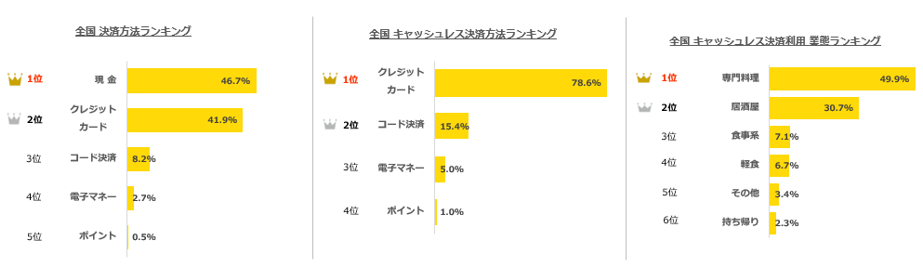 - 決済方法は、現金が46.7%で前月に引き続き第1位となった。