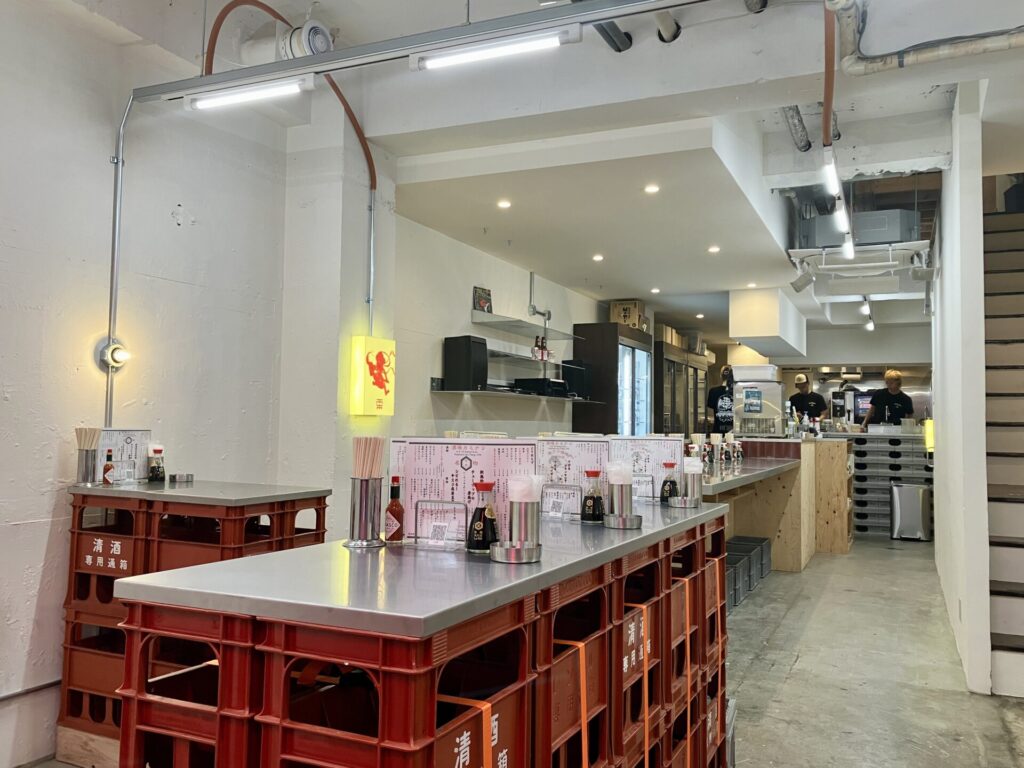店内は、打ちっぱなしコンクリートを基調としたラフで洗練された空間です。大衆酒場の活気を残しつつ、どこかスタイリッシュな雰囲気も感じられます。