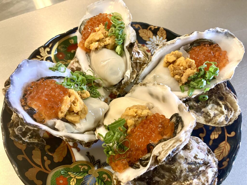 産地直送の生牡蠣に、いくらとウニを豪快にのせた一皿は、見た目のインパクトも抜群で、贅沢な味わいを楽しめます。手頃な価格で提供されている点も魅力です。