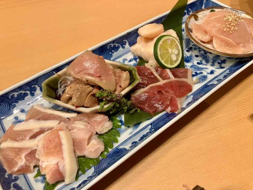 さらに、新鮮な「国産赤鶏(南部どり)」を使用した鶏刺し5点盛りは、たまり醤油で甘みと旨みを引き出しながら、ぷりっとした弾力が楽しめます。