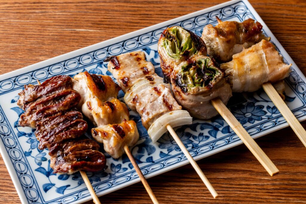 炭火で香ばしく焼き上げた焼鳥の盛り合わせ。部位ごとの旨みと食感の違いを楽しめます。
