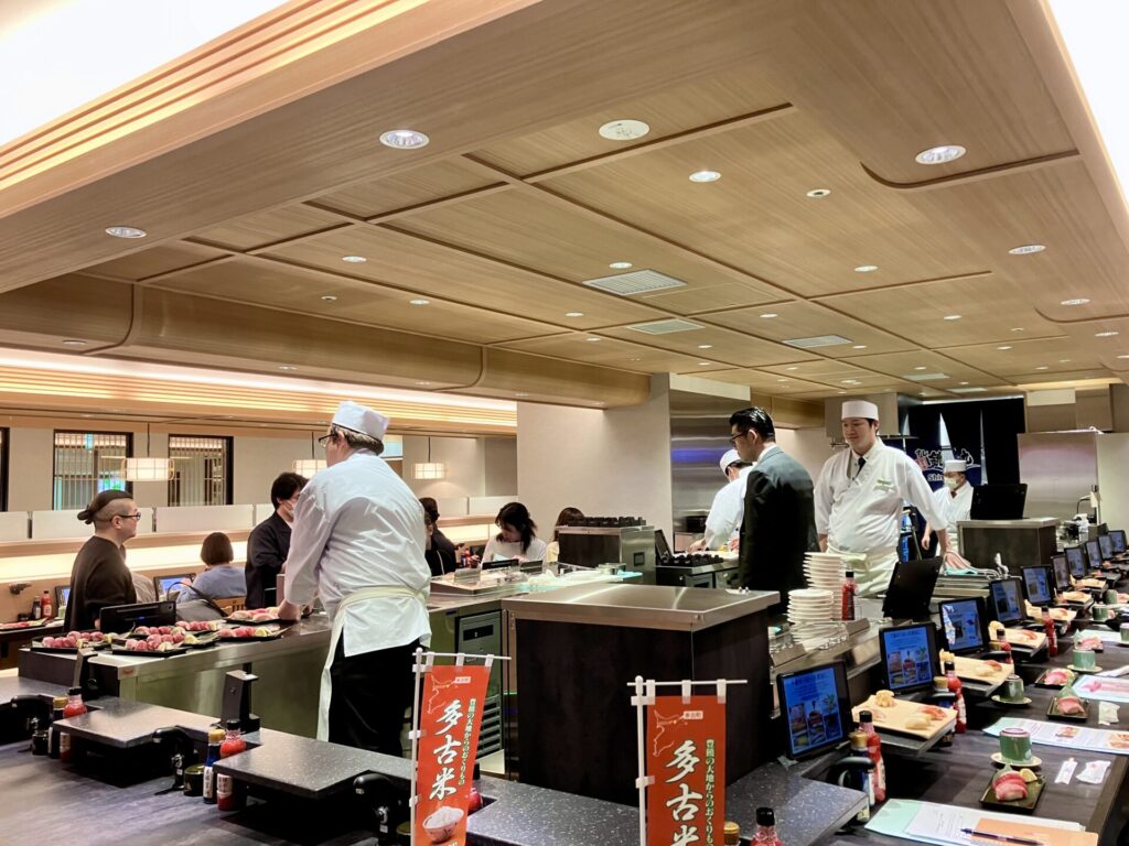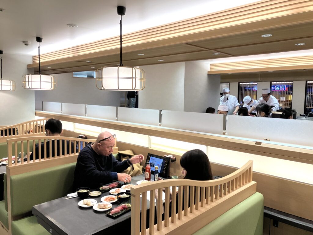 一方、テーブル席(ボックス席)では特急レーンが活躍。家族やグループでも、握りたての鮮度をそのままテーブルへ。活気あるもてなしはそのままに、都心のスピード感と快適性を融合させました。