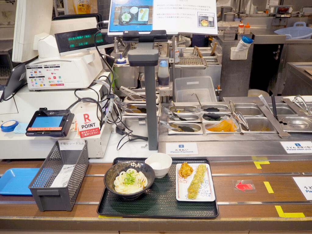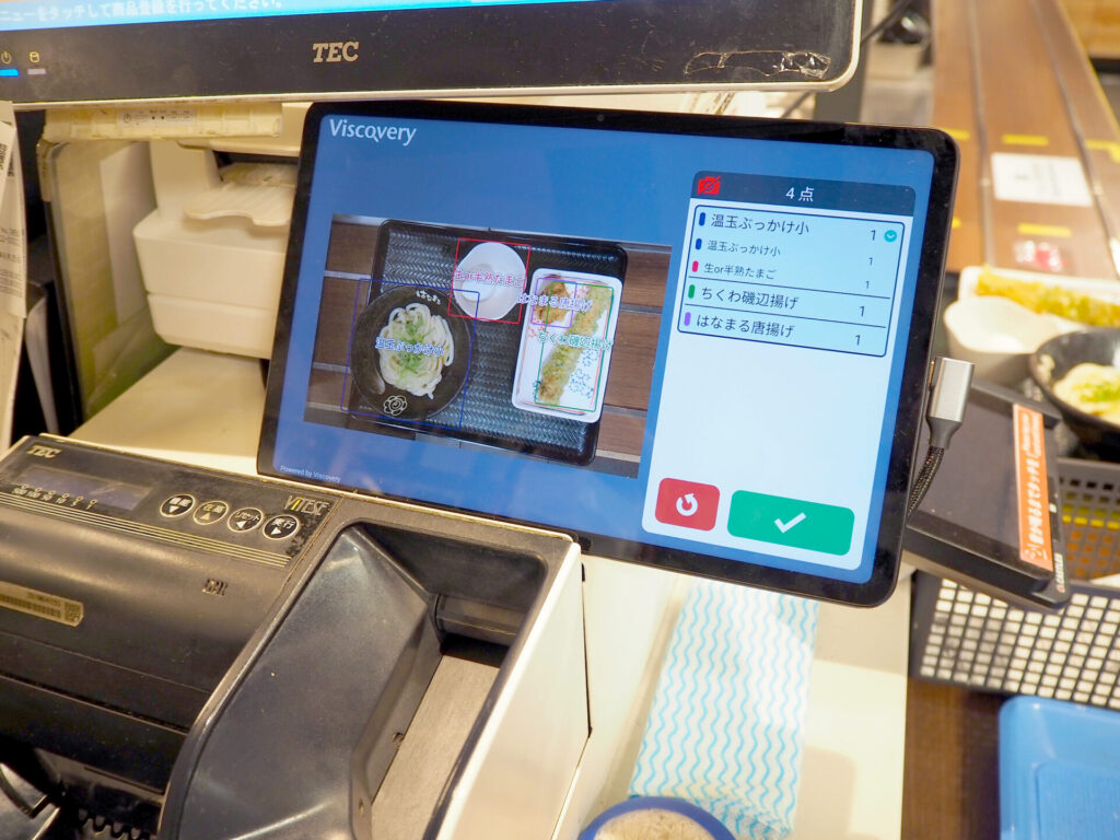 AI画像認識システムVisレジは、はなまるうどんの2店舗で異なるオペレーションでのテストを経て、中野通り店に導入されました。