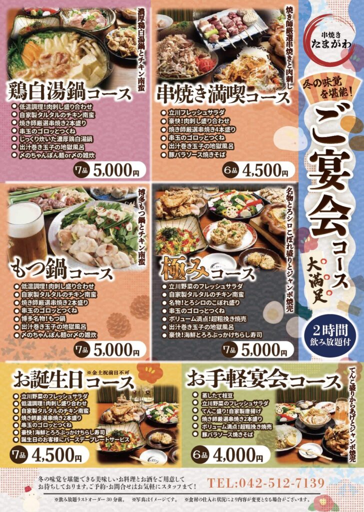 有限会社野村興業(本社:東京都立川市 代表取締役:西川 洋右)が運営する「旬菜炭焼 玉河」「串焼きたまがわ」「玉河 三鷹店」の3店舗が、2025年冬の宴会コースの提供を11月1日より開始します。