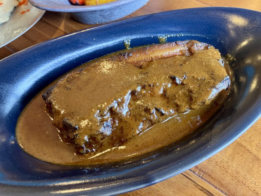 看板メニューのひとつが ポークビンダルー。スパイスの辛味、豚肉の旨味、ビネガー由来の酸味が幾層にも重なり、ひと口ごとに表情を変える味わいが印象的。