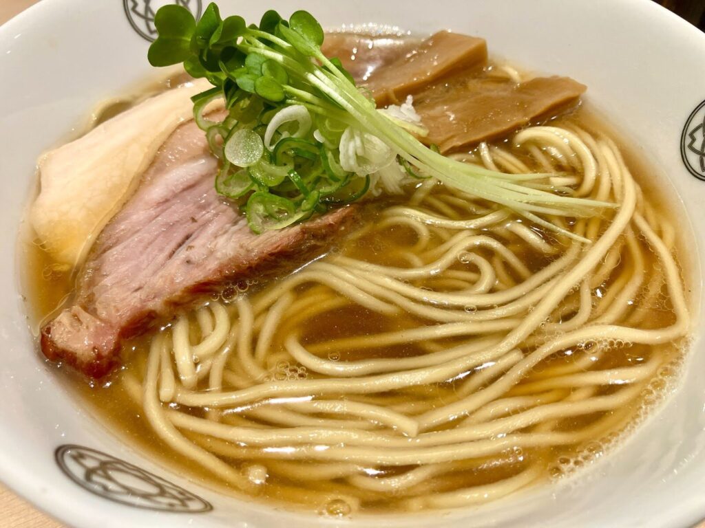 スープは無化調の清湯系。煮干しと鶏などの動物系の旨味をじっくりと引き出し、澄んだ味わいの中にしっかりとしたコクと香りがあります。ひと口すすると、ふわりと煮干しの香りが鼻に抜け、自然な旨味がじんわりと広がります。