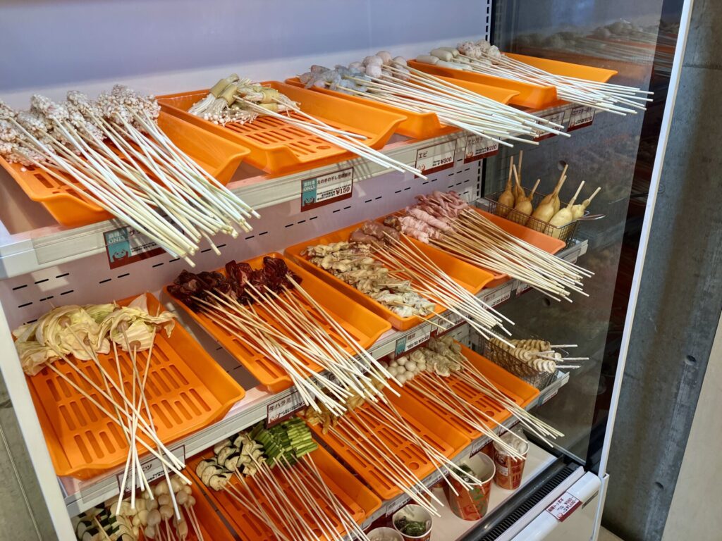 牛ミスジや豚トロ、エビといった贅沢な素材から、ズッキーニやナスなどの野菜まで、幅広いラインナップが揃います。