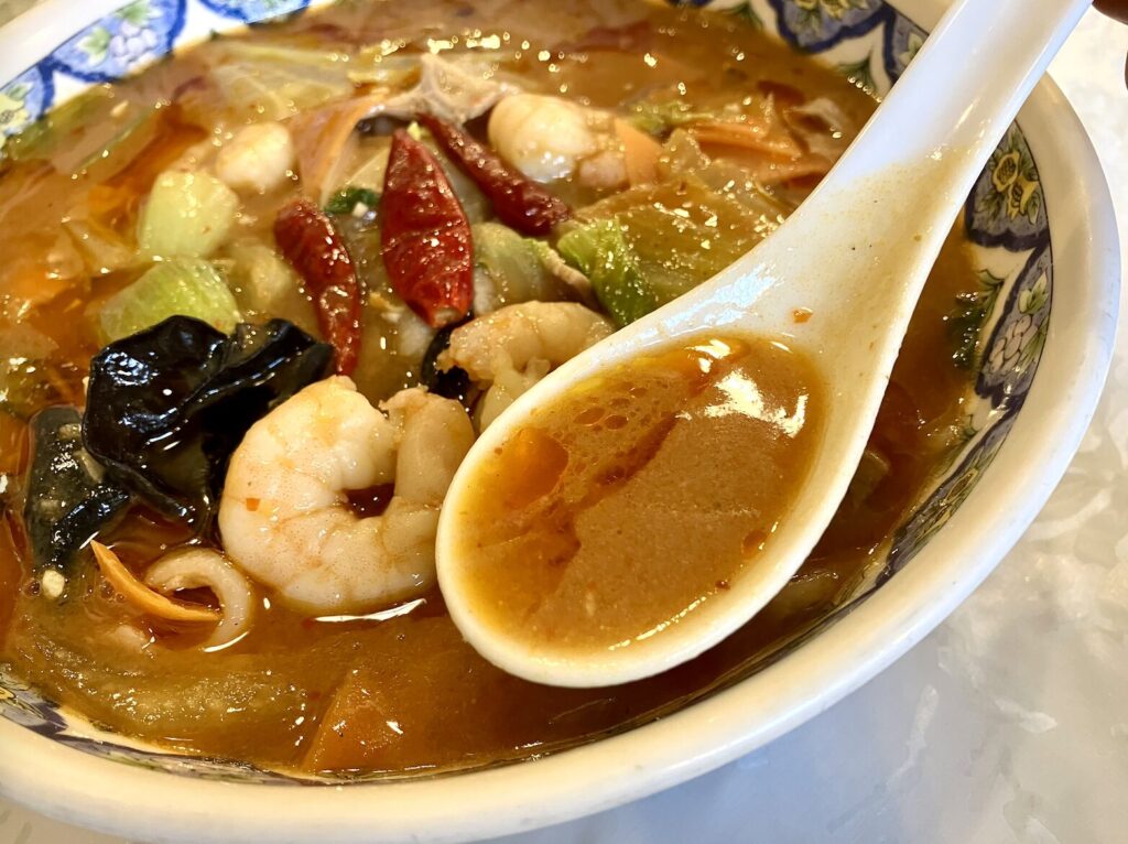 揚州商人ならではの魅力として、麺を4種類から選べる点も見逃せません。料理長のおすすめは、スープとの絡みが良い「揚州麺」と「柳麺」。とろみのある麻辣スープと絶妙に絡み合い、より一層の一体感を楽しめます。